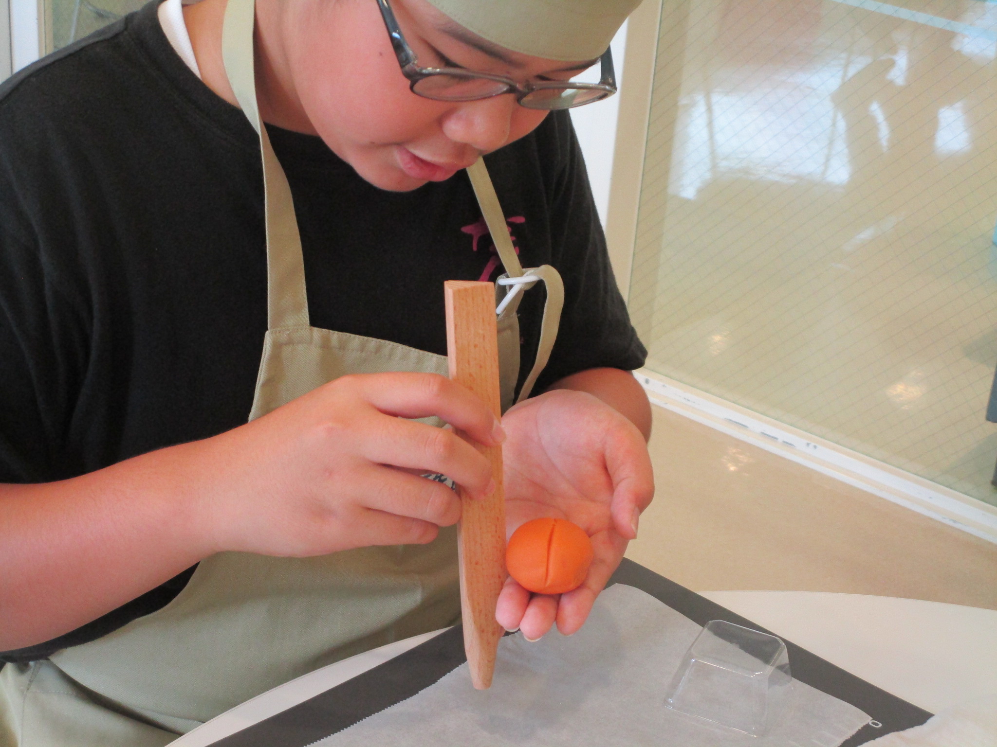 10月19日(日)、羽の華hanoka 東 嘉美さんを講師にお迎えし、みんなでクッキングSP「和菓子 練り切り体験」を開催しました。 練り切り生地を使ったハロウィン風の「練り切り」は、色とりどりのオレンジや黄色を加えたかぼちゃ型が特徴です。 今回は、事前に色付けされた生地で作っていきましたよ! 同じ材料を使っていても、ちょっとした目の入れ方や置き方でニュアンスが変わることから、世界で1つしかない自分だけの「練り切り」が、完成していました~♪ お持ち帰りのため、参加された皆さんは、食べるのが楽しみとのこと! また、食べるのが勿体ないなあ~♡ と言われる方もありました~!!! 「練り切り」を通して、笑顔の輪が広がっていました!!! |