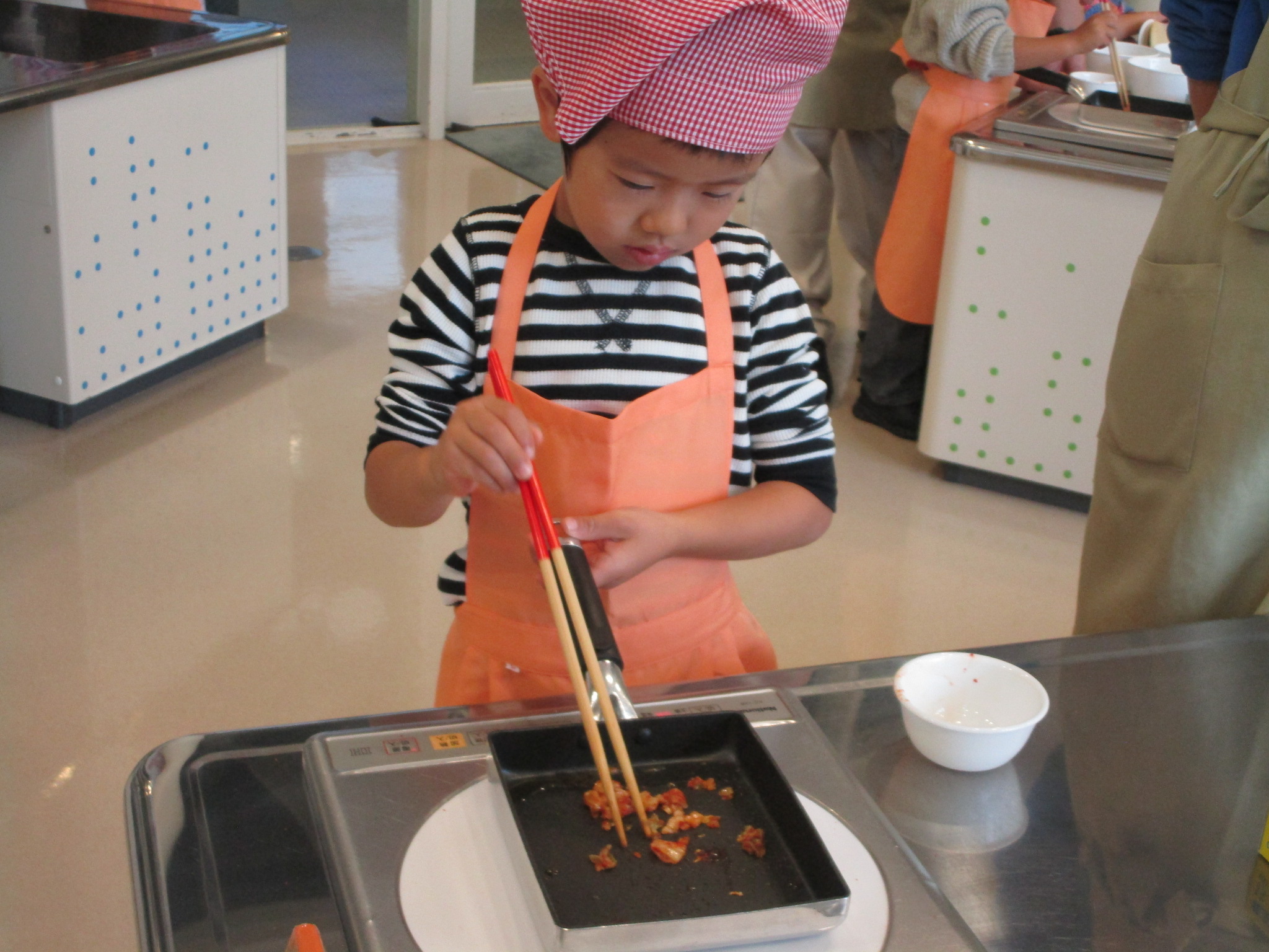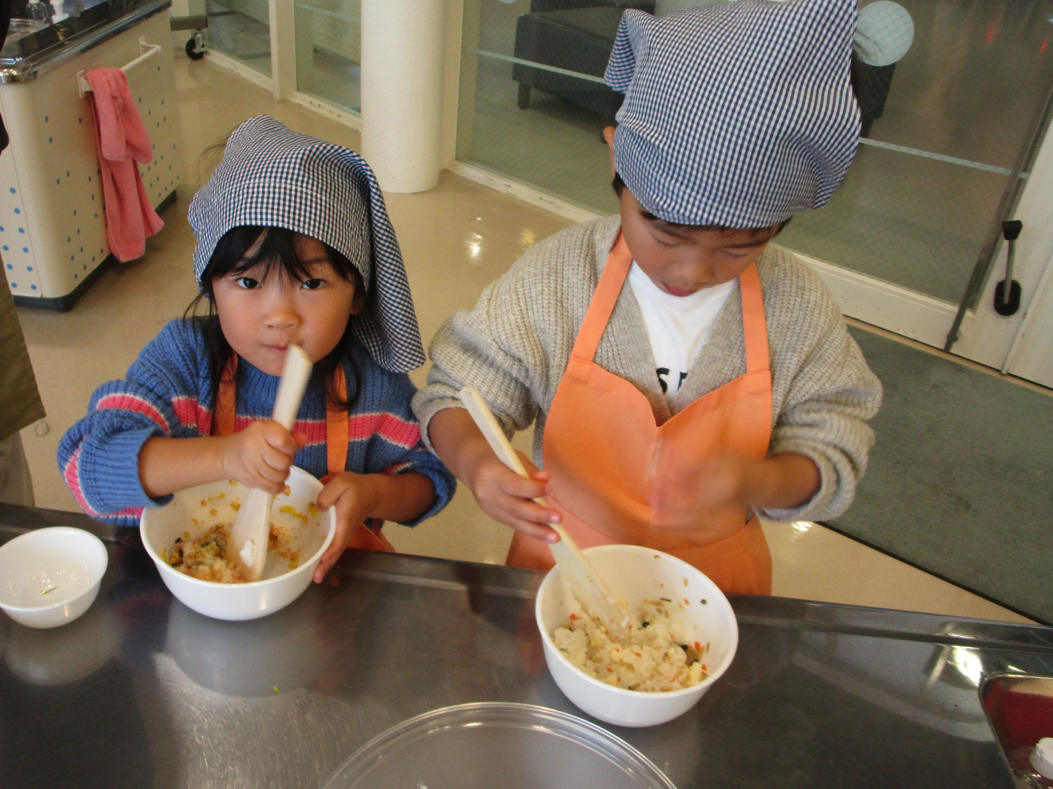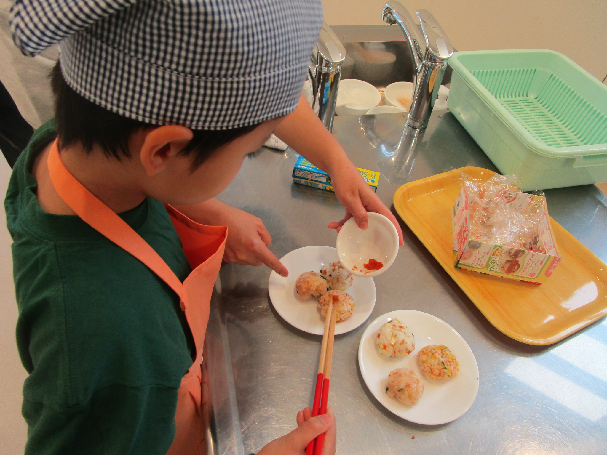 11月9日(日)みんなでクッキングSP「チュモッパ」を開催しました。 嶺南振興局農業経営支援部から、新米「いちほまれ」を、ご提供頂き、 1人3種類をつくりましたよ! 材料を刻んで、韓国海苔、マヨネーズ、ごま油とご飯を混ぜて握るだけ! 地味めな滋味なおかずも「チュモッパ」にすると、不思議とポップに変身! 作る工程は簡単なため、小さな子ども達も頑張っていましたよ! お味の方も、大好評!!! 参加されたみなさんは、親子で、楽しそうに握られていましたあ~!!!