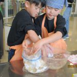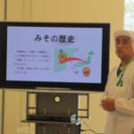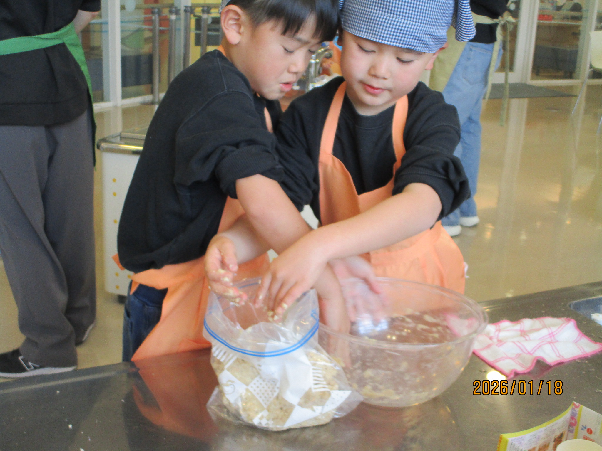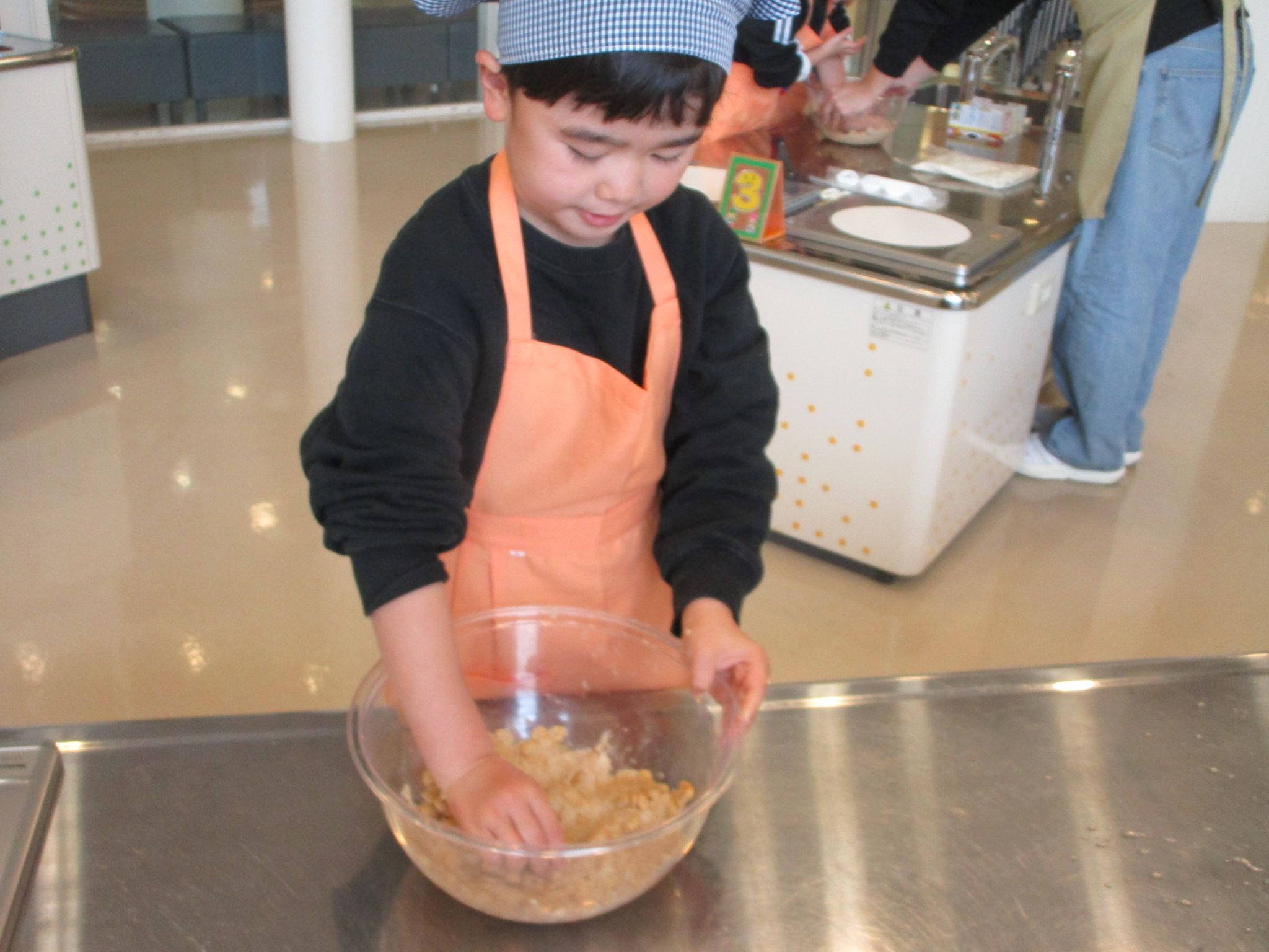 1月18日(日)、JA福井県 小浜加工センター職員を講師に迎え「五徳味噌」を開催しました。 大豆と米こうじ、塩だけで作る、昔ながらの味噌作りに挑戦しました。 やや甘口で、にがりを含んだ塩を使った優しい味が特徴だそうです! 煮た大豆をつぶして米こうじと塩を加え、旨味を増すための大豆の煮汁を混ぜます。その後、粘りが出るまで丹念に練り合わせて出来上がり~♪ 但し、食べられるようになるのは、これから半年ほど熟成させて完成ということです。 自分たちで作った「五徳味噌」のお味は、いかがでしょうか! 半年先が、待ち遠しいですね♪ |